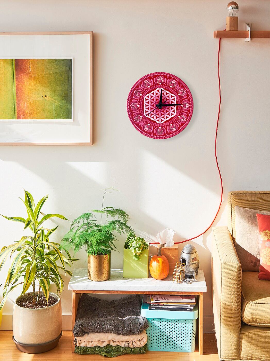 ドットマンダラ 壁掛け時計 レッド フラワーオブライフ Φ17cm