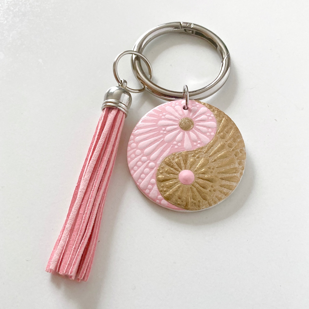 エナジーキーホルダー【陰陽太極図(ピンク&シルバー)タッセル】ドットマンダラ